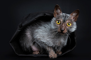 This cat, the result of a genetic mutation, looks more like a haggard, partially hairless feline than a wolf-like creature, as its name would suggest. They were bred for the first time in 2011. They are about the same size and shape as typical domestic cats.