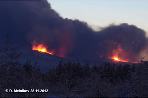 The fissure vents from the late November eruption of Tolbachik. Image: KVERT. November November was the host to a number of eruptions, most prominently the second explosion of 2012 at New Zealand's Tongariro. This came very soon after an alert from GNS Science about elevated temperatures at Ruapehu, Tongariro's neighbor (and in all likelihood, a complete coincident). Volcanoes in Indonesia were as busy as ever while Santa Maria in Guatemala had some of its most vigorous activity in a while. A small plume was also spotted at Chirpoi in the Kuril Islands. However, the big action of November was just to the north of Chirpoi, on the Kamchatka Peninsula. In late November, Tolbachik, part of a complex of volcanoes that includes Bezymianny and Kliuchevskoi, had its first eruption in 36 years. It was an impressive fissure eruption that had produced lava flows that travels 10s of kilometers down the slopes of the volcano. With all the excitement of the US Presidential election in early November, I looked at the perception of probability versus prognostication when it comes to volcanic mitigation. If you're looking for a volcano movie to watch, I finally wrote up my guide to volcanic cinema and I described what a SHRIMP-RG is and how I use it in my research. December As 2012 drew to a close, we were greeted by the media frenzy about the supposed December 21 "Maya Apocalypse" and considering that you're reading this, it is safe to say that the end of the world was not 12/21/12. The Tolbachik eruption went strong for much of the month, with some gorgeous lava flows that showed off all the textbook features we look for in these volcanic events. New Zealand's White Island produced something that hasn't been in any textbook: an odd looking spiky spine/dome in the central crater. We also got an impressive eruption from Ecuador's Tungurahua and some evidence that active volcanism might be occurring on Venus. However, just as the year was coming to a close, Copahue on the Chile/Argentina surprised us with an unexpected eruption, sending a plume across southern South America. I closed out the year talking about why rocks melt on Earth -- a useful thing to know if you're into volcanoes! So, there you have it. The Volcanic Year in Review ... and hopefully 2013 will bring us more volcanic excitement.