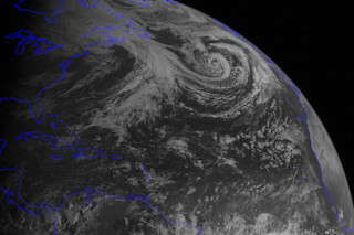 A GOES-13 image taken at 11:45 UTC on March 20 — the first day of spring in the Northern Hemisphere — captured a mid-latitude cyclone swirling in the North Atlantic. The original GOES image showed the full disk of the Earth; this is a closeup. (Image: Courtesy of the awesome CIMSS Satellite Blog) You may have seen a satellite image from NASA floating around the internet yesterday of the full disk of the Earth — a visual celebration of the vernal equinox. (The Washington Post, among others, ran it.) No mistake about it: The image, shot by the GOES-13 satellite on one of two days during the year when the axis of the Earth tilts neither toward or away from the sun, is very cool. But in addition to recording a special moment in time, the image contains a spectacular feature that seems to have escaped attention: a mid-latitude cyclone swirling in the North Atlantic. So I thought I'd post a close-up the GOES-13 image highlighting the cyclone. You can see it in the upper right quadrant of the image at the top of this post. I found it at the awesome Satellite Blog of the Cooperative Institute for Meteorological Satellite Studies, or CIMSS. Their image shows the fill disk, along with temperature readings stretching from the equator to both poles. Technically speaking, the cyclone is occluded, meaning that the cold front that is a normal part of a cyclone has overtaken its warm front. You can find technical details about occluded cyclones here. But before you head over there, make sure to click on the image for a larger version and check out the beautiful detail.