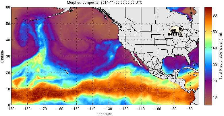 http://youtu.be/R-6UMcz71qI Parts of drought-plagued California got hosed by a gusher of moisture streaming up from the tropics on Tuesday. As the chief meteorologist for Minnesota Public Radio put it, the copious stream of water vapor looks a whole lot like a "pineapple express," a low level jet of moist air flowing from Hawaii to California. This is a phenomenon that tends to occur during El Niño winters. You can see it in the animation above, made up of images from the GOES-15 weather satellite. Look for the broad streak of cloudiness that streams up from the tropics to southern California. In this case, the moisture is coming from the tropics a bit south of Hawaii. But I'm sure Californians are grateful for the moisture regardless of the exact source.