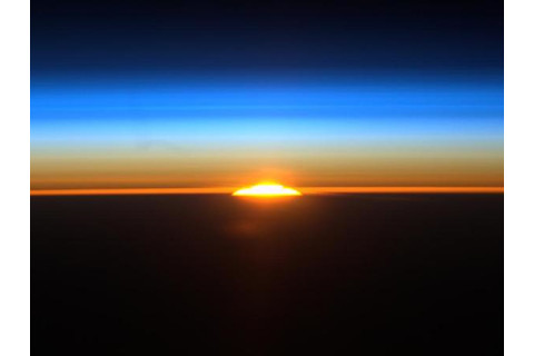 Imagine sitting in a gossamer structure 100 meters long, 400 kilometers off the Earth's surface, and hurtling through space at nearly 30,000 kilometers per hour. Now imagine facing east while doing so, looking out the window, and seeing this: