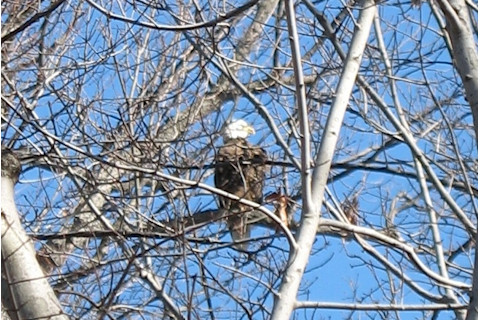 Why is it that all birdwatching trips seem to end up the same way: You trudge along lengthy forest trails and freeze your ass off, only to find at the very end that the bird you were searching for was sitting in the parking lot the whole time? Such was my experience this weekend. On Sunday we went to Virginia, to Occoquan Bay National Wildlife Refuge, to look for Bald Eagles and whatever else we could find. Except for some distant sightings of what may have been eagles, we didn't see squat. But then, while stuck in traffic on the way back to Washington, D.C., what did we see but a majestic eagle (pictured below) sitting in a tree right off the roadside? Incredible.