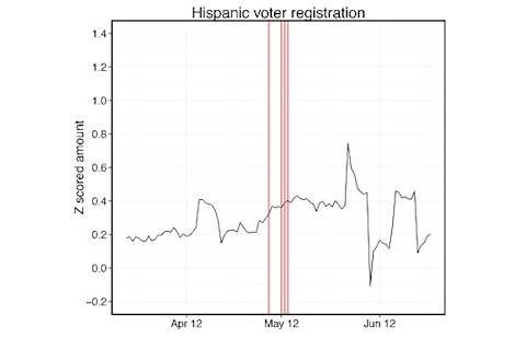 However, there was no evidence that messages about voter registration led to increases in the number of Hispanics actually registering: