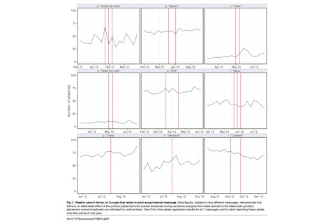 Paluck EL, Lagunes P, Green DP, Vavreck L, Peer L, & Gomila R (2015). Does Product Placement Change Television Viewers' Social Behavior? PloS ONE, 10 (9) PMID: 26398217