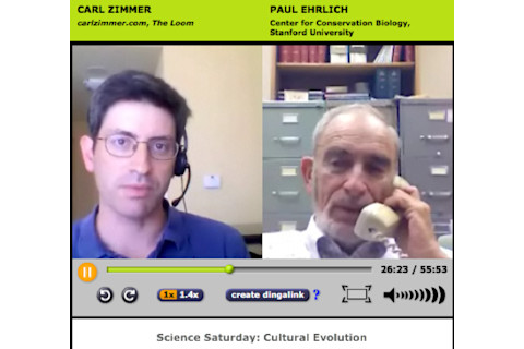 I'm back on bloggingheads.tv, talking this week with Paul Ehrlich about everything from climate change to Polynesian canoe oars to the origins of human culture to why cars are best for teenagers to make out in. Check it out.