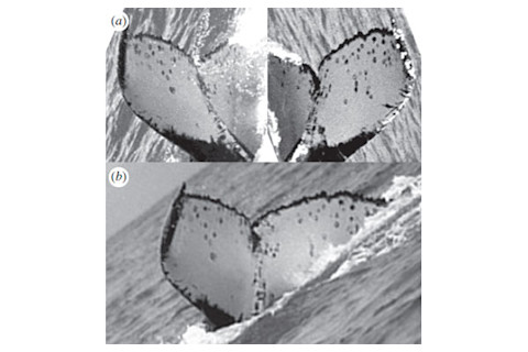 On 7 August 1999, a lucky photographer snapped a female humpback whale frolicking off the east coast of Brazil. Two years later, on 21 September 2001, the same whale was caught on camera again, by a tourist on a whale-watching boat. But this time, she was a quarter of the world away, off the eastern coast of Madagascar. The two places where she was spotted are at least 9800 kilometres apart, making her voyage the longest of any mammal. The spots on her tail leave little room for doubt that both photographers had seen the same whale. These spots are unique to individuals in the same way that fingerprints identify individual humans. They form the basis of the Antarctic Humpback Whale Catalogue, an international collaboration between “scientists, naturalists and tourists” headed by Peter Stevick. Together, the members contribute photos of humpbacks around the world, in an effort to track the movements of these majestic animals.