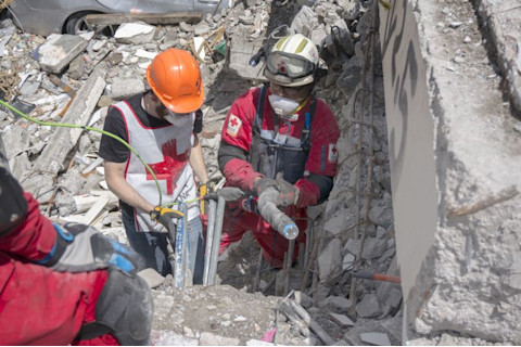 Roboticists and first responders worked together to deploy snake robots after the Mexico City earthquake in 2017. (Credit: Carnegie Mellon University)