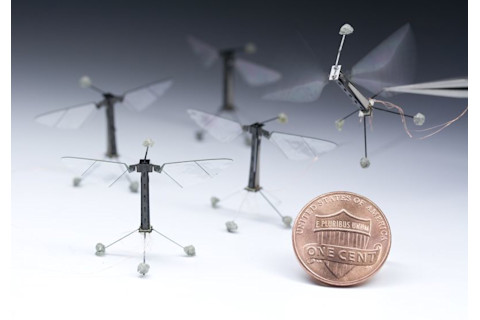 About half the size of a paper clip, RoboBees could be deployed in swarms to fly through collapsed structures. (Credit: Wyss Institute at Harvard University)