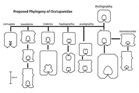 , have given each type of bread clip a handy-dandy Latin name. The bread clip genus (?) is Occlupanidae, presumably for its occluding capabilities, while the species names refer to the relative toothiness---one-toothed, two-toothed, etc.---of the types. They also provide a detailed phylogenetic chart showing the evolution from the smooth proto-bread clip to the many-tined versions adorning our bags today.