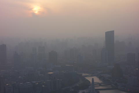 This animation of two images captured by NASA's Terra satellite shows the impact of different weather conditions on air quality over Beijing, which is at the center of both frames. The picture of the city under clear skies was taken on July 5. The image showing China's capital under a thick pall of pollution was captured on January 18 of this year — when the city was suffering what has been dubbed the "airpocalypse." (Images: NASA) Each year, an estimated 2.1 million people worldwide die prematurely as a result of fine particles in the air, and another 470,000 from ozone pollution. These sobering numbers about the impact of air pollution come from a new modeling study published this week in Environmental Research Letters by an international group of 30 researchers. The study, led by Raquel Silver of the University of North Carolina in Chapel Hill, shows that East Asia is hardest hit, with a minimum of about a million deaths annually, and as many as 1.5 million. South Asia was next with about half as many deaths. The animation above dramatizes just how bad things can get in East Asia when weather conditions are conducive to holding in pollutants. It shows Beijing on two different occasions. Both were captured by NASA's Terra satellite. In one image, from this past July 5th, the city is remarkably clear. In the other, from January 18th of this year, the city is mostly obscured by a scrim of air pollution, much of it from very fine particulates, called PM2.5. During that week, the capital city suffered through an episode of extreme air pollution that came to be known as the "airpocalypse." PM2.5 is a particularly severe threat to human health. Exposure to fine particulates is associated with early death from heart and lung disease. The particles can also aggravate heart and lung diseases and trigger cardiac arrhythmias and heart attacks. The new study helps to quantify just how grim a toll this kind of pollution exacts on people around the world. (For more information about PM2.5 pollution, see this FAQ from the U.S. EPA.) I experienced the severity of air pollution in China firsthand during a visit in May. I shot this photo from the 58th floor of a hotel in Shanghai's Pudong district: