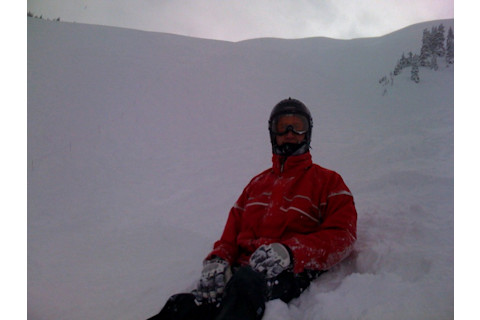 When you're at the top, you need to peer over the edge to see the terrain. For the record, I'm afraid of heights. Standing on a ridge in the freezing cold, with a brisk wind blowing, with a thousand foot steep vertical drop on both sides, should not be a pleasant experience. The whole Freudian death wish thing should kick in pretty hard. But something about all that fluffy powder magically transforms imminent death into the perfect playground. Dropping into the bowl was heavenly. The whole place was virtually deserted. Waist-deep powder in places. With a wonderful runout through the trees. Two hours later I was back in the conference room, learning more about the latest results on dark matter detection. A good day. NOTE: Aaron Sheldon brings up a good point in the comments. I'm a big fan of helmets on the slopes. For me it's a no-brainer, as it were. Plus, helmets keep your ears toasty warm. Also, especially if you're going out-of-bounds, pack appropriate avalanche gear (a beacon, a probe, a shovel, etc.). It's dangerous out there.