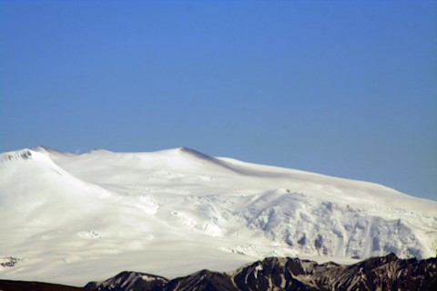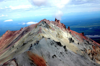 A streak of older ash remobilized by strong winds on the summit of Wrangell in Alaska. Seen in 2007. Norma Traw/ USGS/AVO When people think of Alaskan volcanoes, it is the long chain that is the Aleutians that come to mind. However, in eastern Alaska there is a range of volcanic and tectonic mountains called the Wrangell-St. Elias Range. Isolated from the Aleutians, they volcanoes might be related to the subduction of a small tectonic terrane colliding with North America. What we do know is that they are still active. Wrangell itself is one of the largest composite volcanoes in the world and has produced lava flows that reached 58 kilometers (36 miles) from the volcano ... and Wrangell's last [albeit potentially questionable] eruption was only 85 years ago! Over the last few decades, intense steam vents on Wrangell have been confused with eruptions as well. The Wrangell-St. Elias Range is also home to the somewhat enigmatic source (possibly Churchill) of the White River Ash, twin eruptions in ~850 and 60 AD that rank as some of the largest in the last 10,000 years. Kookooligit Mountains, Alaska