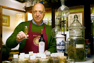 Whoever studies the history of medicine finds L’Orvietan,” says Lamberto Bernardini. In his laboratory in Orvieto, Italy, a medieval hill town famous for its soaring duomo, that history is all around. Bernardini’s vaulted, frescoed space dates to the 1200s. One of the rooms in his lab is a museum-like space filled with historic books and framed antique letters, advertisements, and certificates. Centuries-old apothecary jars line the wooden shelves, their labels hand-painted in Italian script: angelica, genziana, mirra. Separated by a glass wall, the other room could be a medieval alchemist’s studio were it not for the modern stainless steel vats, which sit amid rows of glass bottles and stacks of cartons and labels.