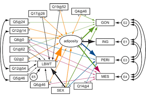 A few months ago I got in my car and drove north until I reached a remarkable building filled with several million mice. At Jackson Laboratory in Bar Harbor, Maine, scientists are studying mice to understand many mysteries of genetics and medicine. But I was particularly curious about a project that they've only recently launched: an attempt to understand how many genes working together give rise to complex traits. When those complex traits go awry, the result may be a common disease such as heart disease, diabetes, or cancer. The article I wrote about what I learned, "Mendel's Mouse," appears in the May issue of Discover. Discover posted the story today on their web site, where you can read it for free here. (I've also archived it here.) Talking about this article is also a chance to add my two cents to a discussion that's been bubbling for a few weeks: the clash between bloggers and scientific journal publishers. Last month Shelley Batts at Retrospectacle wrote a post about a paper, and included a chart that appeared in it. She promptly got a letter from Wiley, the journal's publisher, menacing her with legal action unless she took the chart down. A long discussion then unfolded about fair use, a concept so mystical that I get a headache every time I try to figure out whether it applies to some text or image I'd like to use in my own work. Once the controversy reached Boing-Boing proportions, Wiley sent Batts a note telling her that it was all a big misunderstanding and that they "would typically grant permission on request in order to ensure that figures and extracts are properly credited." For us science writers, there's a huge irony to this episode. Scientific journals like attention. The better-funded ones will go to great lengths to get stories written about their papers. They offer us science writers elaborately appointed press packages offering sneak peeks at papers coming out in the near future. They sometimes give us the cell phones of the authors of those papers, in case we need to call them in the middle of the night. They give us pretty photographs to use (as long as we fairly credit them). But scientific journals also cling to conventions that block the news from spreading--particularly through the online world. Wiley, for example, initially reacted to Shelley not with enthusiasm, but with a menacing note. When Shelley responded by politely asking for permission, she was told to contact another person at Wiley. And when Wiley finally sort-of apologized, they still expected Shelley to jump through conventional hoops to get permission. All this kerfuffle over a little graph. It might have taken days to get permission to reprint it, which in the blogosphere is a geological era. Wiley was, consciously or unconsciously, going out of their way to squash interest in their papers. Compare Shelley's experience to what I'm about to do. I'm going to--shudder--reprint a diagram from a journal. Just lift it straight out. I like this diagram, because it elegantly conveys a point I tried to make in the Jackson Laboratory article, but Discover decided not to use it. So I'll use it here. We tend to think of traits as being controlled in a simple way by genes. One gene drives one trait. You sometimes hear people talking about the "gay gene," the "depression gene," and so on. But this view is almost entirely divorced from reality. The scientists at Jackson Laboratory illustrated this fact in a paper they published last summer in the journal PLOS Genetics. They looked for the genetic source of obesity in mice. They mated mice from dozens of inbred strains and then looked at later generations, meausuring variations in body weight, the size of fat pads, and other traits linked to obesity. They then pinpointed regions of the mouse genome where variations produced variations in those traits. They didn't find an obesity gene. Instead, what they found was this: