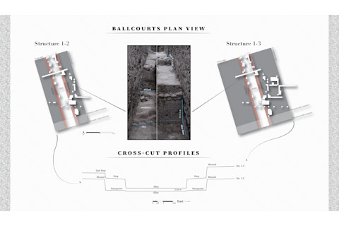 At first, the team didn’t know what they were excavating, Salazar Chávez says. It took a year of digging to realize they were uncovering two ball courts, one above the other. The finds had the classic shape of a field — a strip of playing area, flanked by elevated seating plateaus. Outside those, mounds rose to encompass the entire rectangular setup.