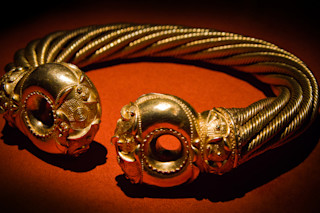 A Celtic torc is rigid wrist or neck adornment, often made from bronze, copper, silver, and gold. (Credit: Andres Victorero/Getty Images)
