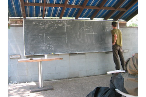 Drinking tea at high altitude again. Still a bad idea.... must remember to bring a pressure cooker next time. See this link if you don't know what I'm talking about. Yes, on my short tour of research hideaways this Summer, I'm at another monastery, the Aspen Center for Physics, where I'll be continuing my quest to get some coherent research thoughts fully explored before the end of the Summer and my other academic duties begin in earnest. For some of the time I'm here, I'll overlap with a couple of workshops in my area (and other interesting ones besides), and hence several old friends and colleagues, which is always very nice to do. I'm coming in near the middle of the workshop entitled "String Theory, Gauge Theory & Particle Physics", and have already today heard two excellent outdoor talks, one by Savdeep Sethi entitled "Can Time End?" and the other by Frederik Denef entitled "Factorization of BPS Degeneracies and the OSV Conjecture". We found out the answer to the first question when Sav firmly ran out of time before he got to say all he wished to. Seriously, his talk (see papers hep-th/0603104, hep-th/0601062, and hep-th/0509204 on the arXiv) is all about the physics of certain types of spacetime singularities -such as the one that lives in our universe's past- and whether we can make sense of the idea of space and time coming into being after such a singularity, while not existing prior to that. He describes certain recently constructed models using string and matrix theory which do give you some rather good control over such issues, it seems. The "funny region" -where time and space have no meaning- is handled (via a "dual" or "indirect" description) by a particular type of non-abelian gauge theory (for the non-expert: roughly the same sort of theory that, for example, describes how nuclei hold themselves together) which does not seem particularly exotic, despite the novel spacetime physics it allows them to get a handle on. This is typical of the kinds of things we're understanding a lot better about spacetime in recent years (and long before the AdS/CFT example, I should mention), which is that many puzzling questions about spacetime -such as how to describe a complete breakdown of its existence as a nice, smooth arena in which we live to for example the (expected) more primitive state of earlier eras in the universe's history- seem to be better phrased in terms of gauge theory questions.