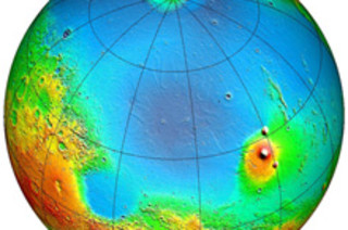 One of my favorite science-fiction movie scenes is the opening sequence of Armageddon, which depicts the asteroid impact that marked the end of The Dinosaur Show. After the impact, hellfire rains down across the globe in deadly, but photogenic, fashion. But as impressive a visual as that scence is, it is small beans compared to what scientist think might have actually happened to Mars. After sifting through huge amounts of data sent back from NASA's Mars Reconnaissance Orbiter and the Mars Global Surveyor probes, scientists believe they are closer to an explanation of one of the great puzzles of the solar system: why the northern hemisphere of the planet is so different from the southern hemisphere. The southern hemisphere is a jangle of ancient and rough terrain. The surface of northern hemisphere is much younger, and one of the flatest places in the solar system. Suggested explanations include the notion that the northern hemisphere is the sea bed of long-vanished ocean, that lava flows from the interior smoothed out the surface, or that it's actually just a really big crater from a really, really big asteroid. A new analysis of the shape of the Northern plain that (and this was the hard part) took into account later volcanic action that distorted the outline over the eons has put considerable weight behind the crater theory. This would make Mars host to the largest crater in the solar system and give us new insight into just how dangerous the early solar system was—it's believed that an even bigger asteroid collided with the Earth, splitting the planet completely open and splashing off gobs of material that later formed our moon.