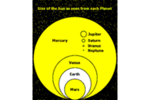 showing how big the Sun is from each of the planets (thumbnail shown here; click to ensolarnate). He didn't put Pluto on it, but from there the Sun would look even smaller on average than it does from Neptune. Never forget: the solar system is big! The New Horizons probe was launched in early 2006, is screaming across the solar system at 15 km/sec (fast enough to cross the entire US in about 5 minutes!) but still won't pass Pluto until mid-2015. Space is deep, vast, and empty. From far enough away, even the Sun itself would be dimmed to invisibility. If there's a life lesson in there somewhere, feel free to find it.