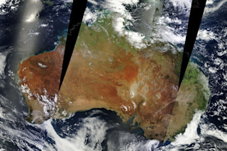 Australia as seen by NASA's Terra satellite on Feb. 9, 2015. The black strips are areas of missing data. Note the plumes of smoke from bushfires in the far southwestern part of the country. (Source: NASA) A new report out earlier this week says climate change is making Australia hotter, with anomalously warm days occurring more often and heat waves becoming hotter, longer and more frequent. Perhaps the report should have been titled "Baked Australia" instead of "Quantifying the Impact of Climate Change on Extreme Heat in Australia." To be honest, at first I wasn't going to post anything about this. That's because the report, from Australia's Climate Council, doesn't seem to have much if anything that has not been published before. It's certainly useful as a synthesis of information. But then I grew concerned that its release was timed to stick a fork in the eye of Australian Prime Minister Tony Abbott, who was about to undergo a political near-death experience. More about that in a minute. But first...