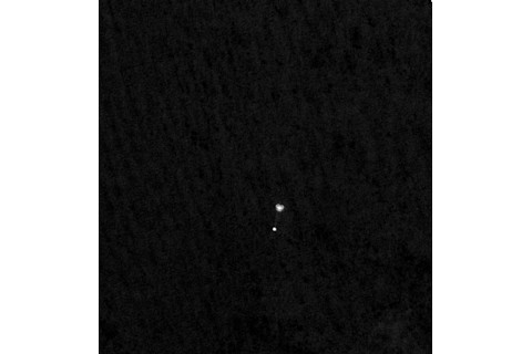 That is exactly what you think it is: Phoenix descending to the Martian surface underneath its parachute. This incredible shot was taken by the HiRISE camera on board the Mars Reconnaissance Orbiter. You can easily see the 'chute, the lander (still in its shell) and even the tether lines! Think on this, and think on it carefully: you are seeing a manmade object falling gracefully and with intent to the surface of an alien world, as seen by another manmade object already circling that world, both of them acting robotically, and both of them hundreds of million of kilometers away. Never, ever forget: we did this. This is what we can do.
