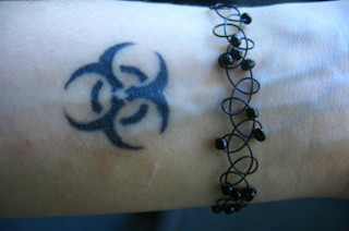 "i send you my biohazard tattoo. obviously it's not about the band ^^ i'm a biology student and it represents my choice...." --Alesita