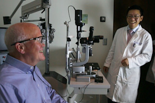 Larry Hester and Paul Hahn, MD, prepare for the first test run with the new bionic eye. (Photo Credit: Shawn Rocco at Duke Medicine) People diagnosed with a degenerative eye disease are seeing a new future thanks to bionic eye technology. For decades, Larry Hester adjusted to life without vision after retinitis pigmentosa caused the photoreceptor cells in his eyes to gradually die off. But this week, Hester’s sight was partially restored following surgery that transformed his eye into a bionic eye. He’s now the seventh person to undergo this FDA-approved procedure. Hester received the device in September, but he tested his bionic eye for the first time yesterday — as captured in the video below: