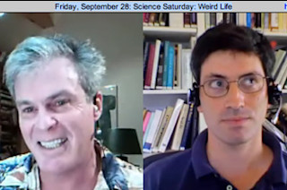 My talk with John Horgan on bloggingheads.tv is up. I'm sure the fact that the label "weird life" appears directly over my head was an accident (right, John?). Anyway, we had a good talk about parasites, aliens, and how to handle hype in science. I may have made some mistakes--feel free to fact-check in the comment thread. Unfortunately, I can't strike out my spoken errors, but we can make the best of it. (If you hanker for more scienceblog/bloggingheads encounters, see these talks by PZ Myers and Chris Mooney.)