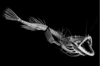 I am a bone geek, I confess. On my bookshelves are a bunch of coffee-table books full of skulls, femurs, and xyphoid processes. They include From Lucy To Language, loaded with hominid remains, Human Bones for our current anatomy, and Fossils for a quick hit of Deep Time. An excellent addition to this sub-sub-genre is called, simply, Evolution. It's loaded with gorgeous pictures of vertebrate skeletons (including this angler). In today's New York Times, I have a photoessay with several other selections. You can check out a slide show here. Update: I forgot to mention that I talk about the photoessay at the top of this week's NY Times Science podcast.
