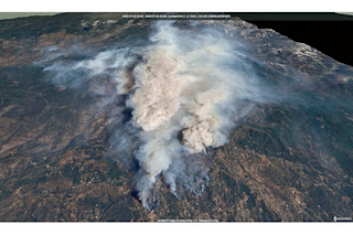 Landsat passed over the Oak Fire today. I used imagery acquired by the satellite to create this virtual 3D flyover of the scene:
