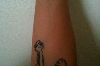 Emily writes, "Ever since I was a kid, I have had a love for astronomy. I studied Earth and Planetary Sciences in college and am now in graduate school, studying to be a middle school science teacher. Another love I had as a kid was reading Calvin and Hobbes. My science tattoo combines these two childhood loves -- with Calvin and Hobbes looking up at the 8 planetary symbols and the symbols for a star and water. Just like Calvin and Hobbes, I will always be gazing up at the sky with wonder and awe." Click here to go to the full Science Tattoo Emporium.