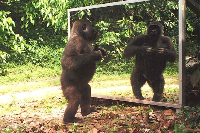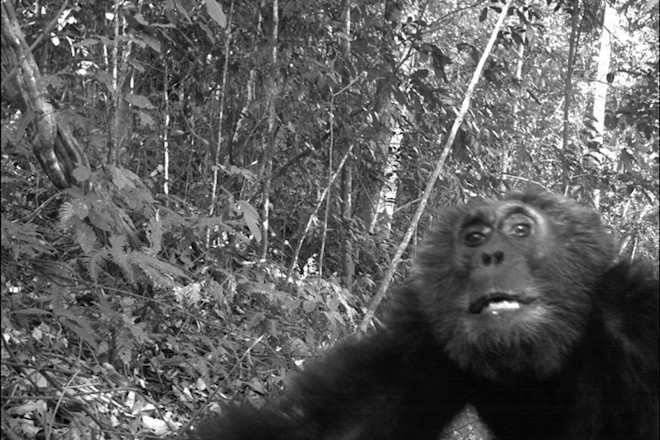 A chimp takes a selfie. Badru Mugerwa/ITFC/TEAM Network