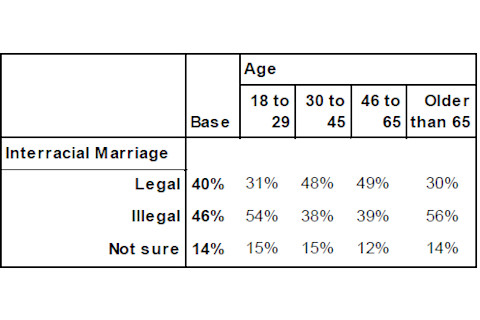 Do you think interracial marriage should be legal or illegal?
