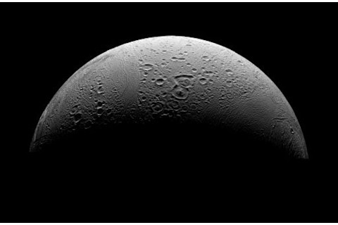 It shows the north pole of Enceladus, which is heavily cratered. Like Jupiter's moon Europa, Enceladus is encrusted in water ice, which is why it is so white and why there are large smooth regions; cracks in the surface can let water pour through and refreeze. It's thought the moon may have an undersurface ocean like Europa does as well. You can read more about the Cassini dive in their press release.