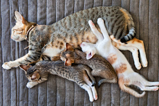 In the first stage, your mommy cat begins nesting and contractions will start as its body prepares for delivery. If your cat is in this stage for longer than 24 hours, check in with your vet.