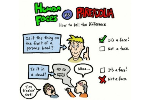 Funny, that seems like an obscure title, but in fact it's accurate. Cectic is a skeptical web comic. Pareidolia is the human predilection to see faces in random patterns. Recently, Cectic did a comic on pareidolia: