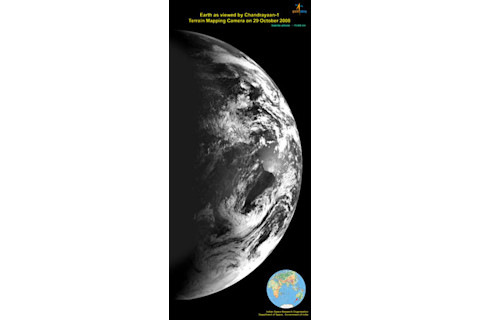 The Indian lunar probe Chandrayaan-1 is slowly making its way to the Moon; it'll be another week before it gets there. In the meantime, the ISRO (Indian Space Research Organization) has been testing the cameras by taking images of the Earth. The picture shown here (click to embiggen) is very cool. It shows the southern coast of Australia, and I think it's south-up, despite the map they show [