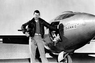 After the war, he took on test pilot duties. In 1947, Yeager became the first person to travel faster than the speed of sound, flying the experimental, rocket-powered, bullet-shaped Bell X-1 airplane. The feat demonstrated that the “sound barrier” — the dramatic increase in drag and buffeting as an aircraft approaches the speed of sound — could be broken, paving the way for supersonic aviation.