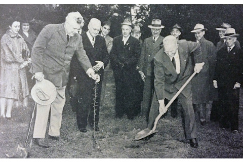 Gov. Earl Warren (with shovel) plants a cork oak tree on the state capitol grounds for California’s Arbor Day in 1944. (Credit: Giles B. Cooke Collection/Swem Library/College of William and Mary)