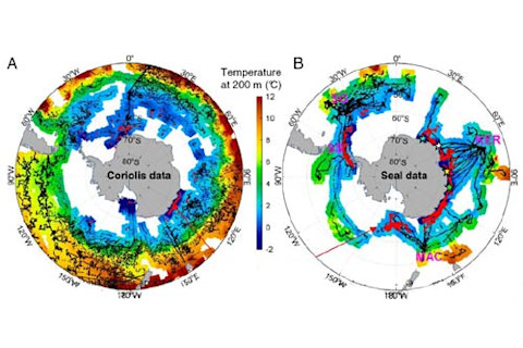 Devices like floating buoys provide an excellent coverage of the sea-ice north of 60S but hardly any readings at more southerly latitudes. But the seals had no such difficulties; they ventured into areas completely untouched by the probes, including the entire eastern face of the continent. At these latitudes, they provided 9 times more data than the floats and ships did.