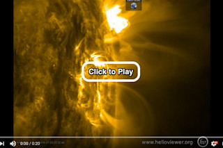 A M7.6-class solar flare is seen here in the extreme ultraviolet part of the electromagnetic spectrum in a video captured by NASA's Solar Dynamics Observatory spacecraft on July 23, 2016. (Source: NASA, ESA and JAXA. Images and movies created using the ESA and NASA funded Helioviewer Project: http://helioviewer.org/) Viewing the Sun at this wavelength is particularly useful for monitoring flaring activity. An almost unimaginable release of energy is dramatized well in this view. As a fascinating aside, recent research suggests that energetic particles from fusillades of solar flares far bigger than what we see today led to the formation of organic molecules in the early Earth's atmosphere. And these compounds, in turn, could have provided the seeds for the origin of life. Moreover, the flares could have warmed Earth enough for life to take hold. Today, solar flares and CMEs are much smaller. But they do pose risks to satellites, astronauts on the space station, telecommunications systems, and the electrical grid. Luckily, the July 23rd flare and CME were not directed at Earth. And even if they had been, the event was not terribly large. The flare was designated as a M7.6 event. Below it in strength are A, B and C classes. There is a tenfold increase in energy with each one. The most powerful events are X-class flares. That's 10 times stronger than an M flare. The LASCO instrument aboard the Solar and Heliospheric Observatory spacecraft, or SOHO, also witnessed the fireworks on July 23rd. LASCO consists of three telescopes that employ a solid disk, called an "occulter," to cover up the Sun. This blocks direct sunlight, thereby allowing the Sun's dimmer corona — it's extended atmosphere — to be seen. https://www.youtube.com/watch?v=zyvk_AVRkwY&feature=youtu.be LASCO's coronagraph also can see material flying out from the Sun in a coronal mass ejection. In the video above (which loops several times) you can make out the CME that was hurled into space during the explosion on July 23rd. Okay, here one last view of the event — let's call it the 'extended cut': https://www.youtube.com/watch?v=Tu9h3yR2RKo If you're interested to see more videos of solar activity, and a host of other natural phenomena, you can poke around in my Youtube channel. Lastly, if you want to make your own videos of solar activity, check out Helioviewer's online interactive tool.