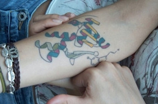 Explore Chrissy's unique science tattoo emporium showcasing a serotonin design and CMP initials tattoo. Discover the story!