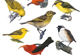 The beautifully diverse honeycreepers. Cover art for Current Biology, volume 21, issue 22 Though most people focus on Darwin's famous birds, I would argue that the Hawaiian honeycreepers are the most dazzling example of adaptive radiation, especially by a finch. From a single finch ancestor arose a stunning diversity of honeycreepers, from the brilliant red I'iwi with its long, curved bill to the small, rotund ʻAkikiki. Over 50 species of these colorful forest birds once brightened the islands from Hawaii to Laysan, putting the 14 Galapagos finches to shame. Their tale is not just one of rapid evolution, though; it's one of a brief and fleeting existence on this planet. All but eighteen are extinct, and of those that remain, ten are endangered or critically endangered and five are listed as vulnerable, leaving only three species that seem to be holding their own against the every-growing list of threats to their survival.