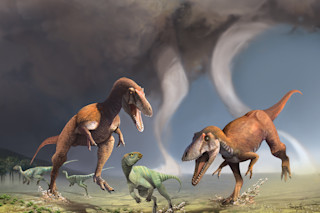 Evolution nailed it very early in the lineage of theropods, one of the major models of dinosaur. In fact, it looks like the very first dinos were theropods: basically, bipedal carnivores. Yes, okay, a handful of theropods went vegan after a careful examination of their conscience (or an imbalance in the prey-predator ratio that made eating vegetation a successful survival tactic...you decide which reason was more likely). But, for the most part, evolution took the basic, successful theropod blueprint and then painted it with all the colors of the wind, creating wildly diverse variations. Theropods ranged in size from chicken-ish to megapredators exceeding 50 feet in length. They spread across the world, their fossils found from the Arctic to the ancient rivers of what's now sub-Saharan Africa.