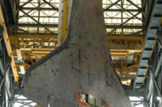I am still filming Skeptologists, but for now, feast your eyes on these way cool pictures of the external tank of the Shuttle being delivered to Kennedy Space Center. Down lower on that page are awesome shots of the Shuttle orbiter Discovery being refitted for launch after landing. Tip o' the spacesuit visor to BABloggees James Jones, Brent Bender, and Tim Farley.