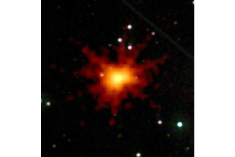Swift is a satellite designed to look for gamma-ray bursts (GRBs); incredibly violent cosmic explosions that occur when black holes form. We think there are several ways this can happen, but the most common is when a massive star explodes at the end of its life. Forces in the star's core can create unbelievably destructive power; essentially packing all the energy the Sun emits in its entire lifetimeinto two narrow beams that march across the Universe. A GRB beam can be so intense that from a hundred light years away it would blowtorch the Earth, and so bright it can be seen from clear across the observable Universe. For once, I'm not exaggerating. In the case of last month, the GRB was about 5 billion light years away. Called GRB 100621A (from right to left, the first GRB seen on the 21st of June in 2010), it was unusually, amazingly bright in X-rays. A lot of GRBs emit light across the spectrum, from radio to super-energetic gamma rays, but this one really overachieved in the X-ray department. Swift, normally easily able to handle the X-ray load from these explosions, was overwhelmed, and actually shut down temporarily when software detected that the cameras onboard might get damaged by the flood of light. That's never happened before.