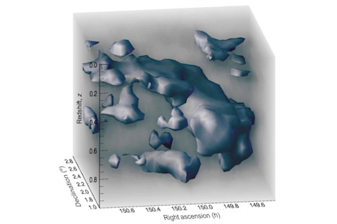 The internet works so that we don't have to! This week is the big annual meeting of the American Astronomical Society in Seattle, so expect to see a series of astro-news stories pop up all through the week. The first one concerns a new result from the Cosmological Evolution Survey (COSMOS) -- they've used weak lensing to reconstruct a three-dimensional image of where the dark matter is. Here is an image from the Nature paper by Richard Massey et al. (subscription required).
