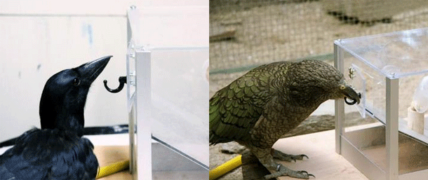 Reference: Auersperg, von Bayern, Gajdon, Huber & Kacelnik. 2011. Flexibility in Problem Solving and Tool Use of Kea and New Caledonian Crows in a Multi Access Box Paradigm. PLoS ONE http://dx.doi.org/10.1371/journal.pone.0020231