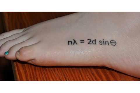 So attached find a picture of my tattoo of Bragg’s Law. It is along the side of my left foot and shows nicely in my favorite pair of heels.