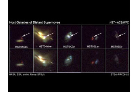 Thursday ("today," for most of you) at 1:00 p.m. Eastern, there will be a NASA Media Teleconference to discuss some new observations relevant to the behavior of dark energy at high redshifts (z > 1). Participants will be actual astronomers Adam Riess and Lou Strolger, as well as theorist poseurs Mario Livio and myself. If the press release is to be believed, the whole thing will be available in live audio stream, and some pictures and descriptions will be made public once the telecon starts. I'm not supposed to give away what's going on, and might not have a chance to do an immediate post, but at some point I'll update this post to explain it. If you read the press release, it says the point is "to announce the discovery that dark energy has been an ever-present constituent of space for most of the universe's history." Which means that the dark energy was acting dark-energy-like (a negative equation of state, or very slow evolution of the energy density) even back when the universe was matter-dominated. Update: The short version is that Adam Riess and collaborators have used Hubble Space Telescope observations to discover 21 new supernovae, 13 of which are spectroscopically confirmed as Type Ia (the standardizable-candle kind) with redshifts z > 1. Using these, they place new constraints on the evolution of the dark energy density, in particular on the behavior of dark energy during the epoch when the universe was matter-dominated. The result is that the dark energy component seems to have been negative-pressure even back then; more specifically, w(z > 1) = -0.8^+0.6-1.0, and w(z > 1) < 0 at 98% confidence.